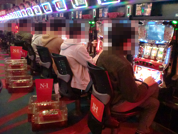 広々とした休憩スペースを利用しているプレイヤーも多く、遊技以外の時間も居心地よく過ごしていることがうかがえた。