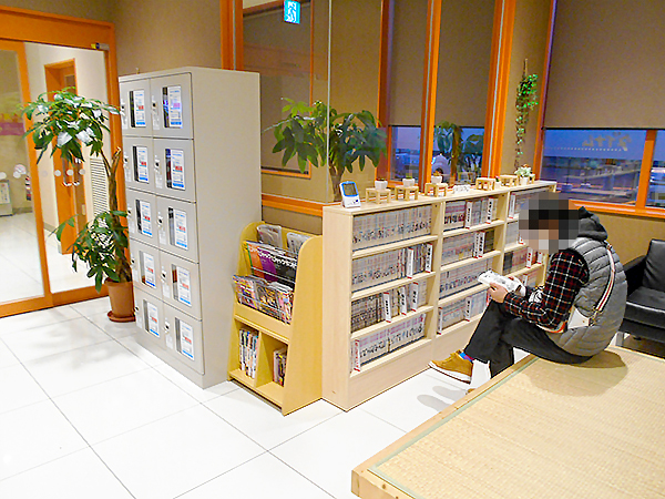 レストスペースには漫画本や雑誌が用意されており、誰もがのんびり休息できることだろう。