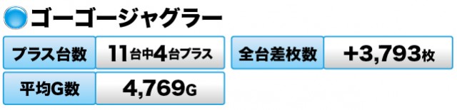 11台中4台がプラスで全台差枚数は+3,793枚だった。