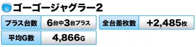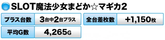 12台中5台がプラスで全台差枚数は+13,751枚だった。