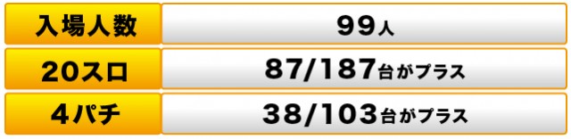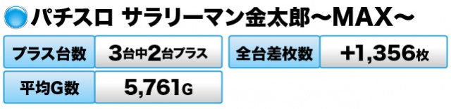 パチスロ全体では、187台中87台がプラスでトータルの差枚数は+36,839枚という結果に。