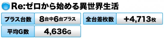 8台中6台がプラスで全台差枚数が+4,713枚。