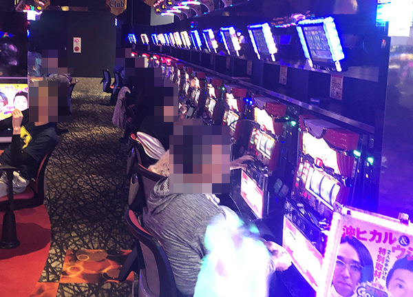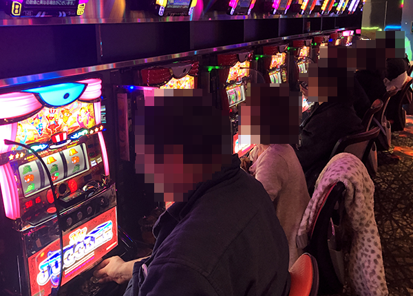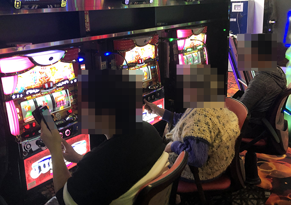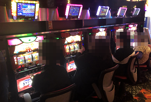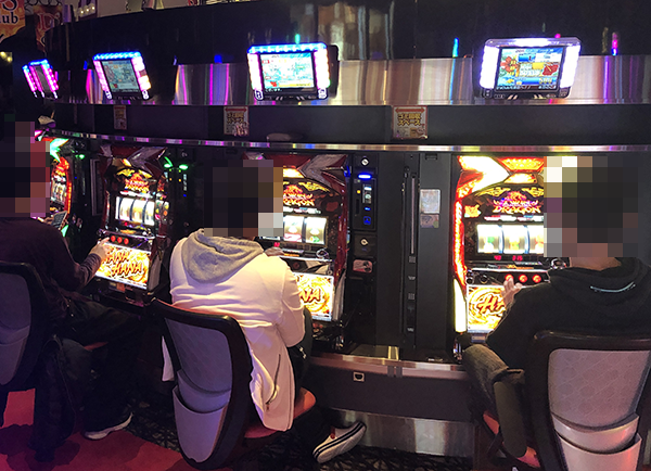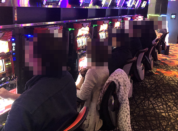 15時頃には設置されている8台すべてが稼働しており、遊技を楽しむプレイヤーがズラリと並んでいた。