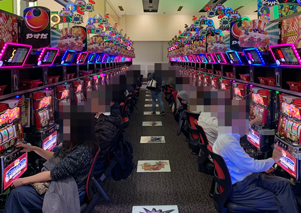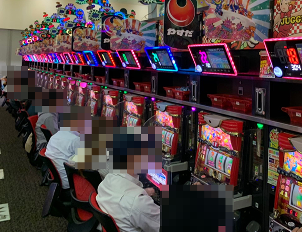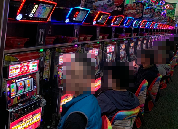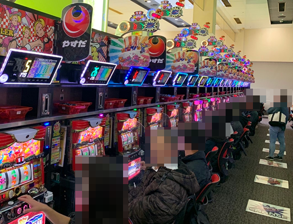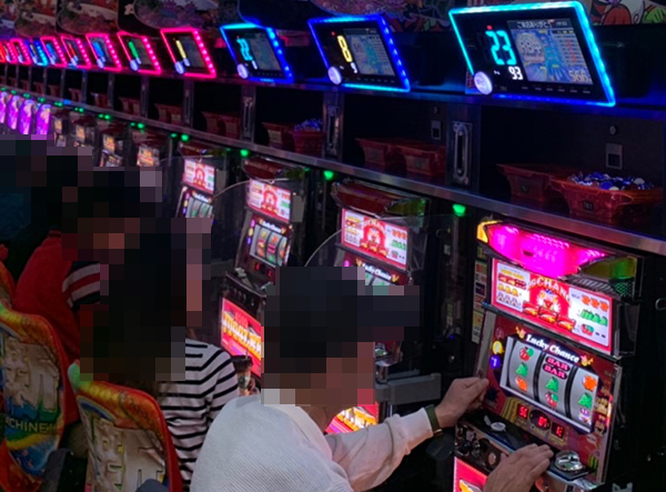 遊技を満喫しているような姿のほかに、『マイジャグラーⅣ』とおなじく、14時の時点でボーナス回数が20回以上の台も目にしている。