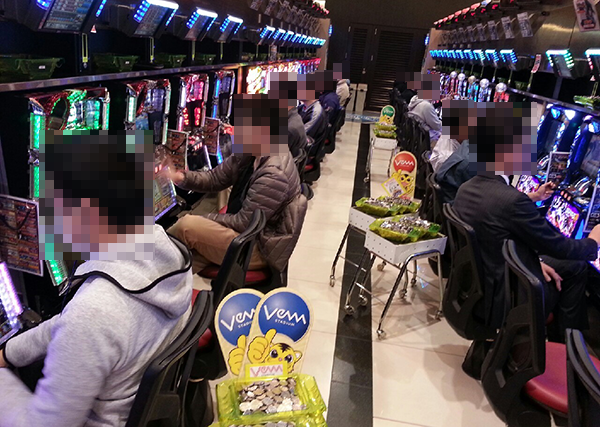 じっくりと遊ぶことができる1円パチンコと0.5円パチンコも好評で、シニア層のプレイヤーを中心に支持されていた。