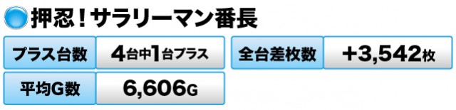 4台中1台がプラスで全台差枚数が+3,542枚だった。