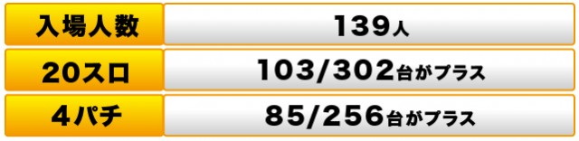 パチスロ全体では、302台中103台がプラスで全台差枚数は+277枚だった。
