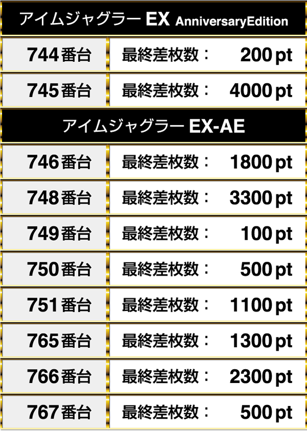 746番台は、『アイムジャグラーEX AnniversaryEdition』の744番台と745番台の2台と連なってプラスptを記録した。