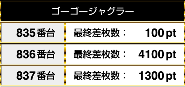 4000ptオーバーの台があった『ゴーゴージャグラー』は3台が連なってプラスpt!