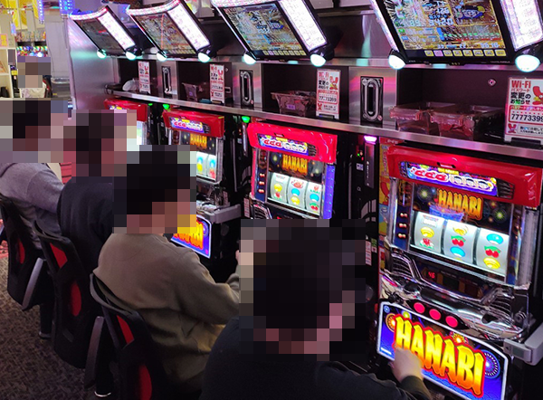 パチスロコーナーに足を踏み入れると、随所に活躍をみせるプレイヤーが並んでいた!