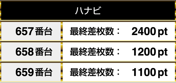 閉店時には3台すべてがプラスptとなり、2台は1000pt以上を記録してこの日を終えていた。