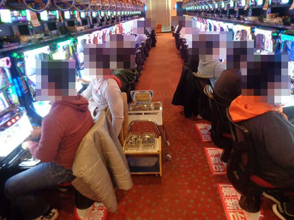 友人同士で談笑しながら遊技台を選んでいるなど、いたるところで楽しそうな光景を目にしている。