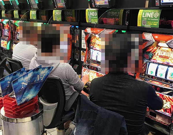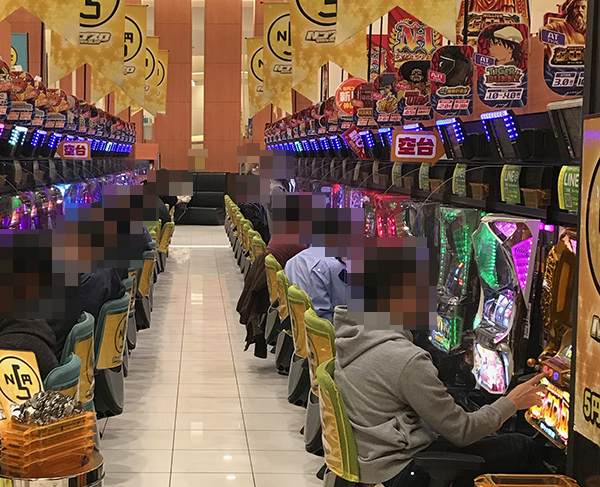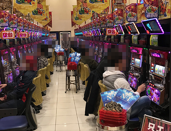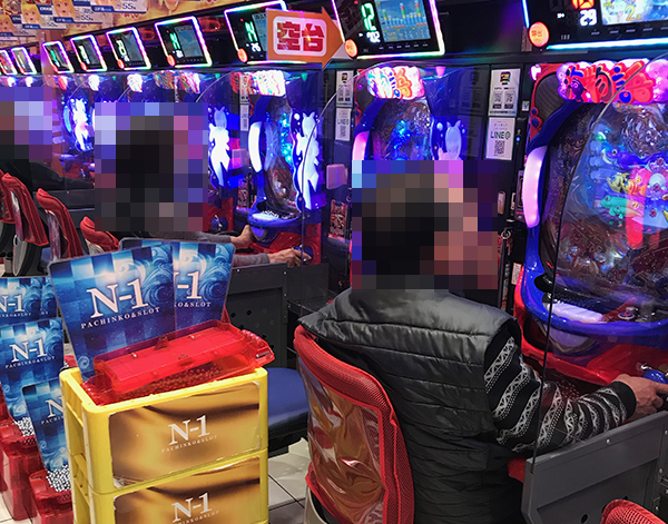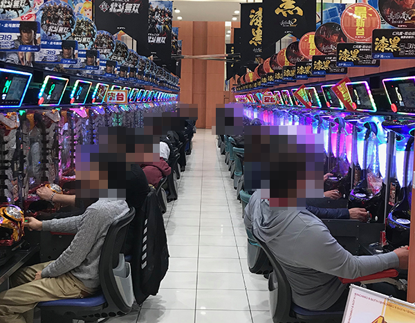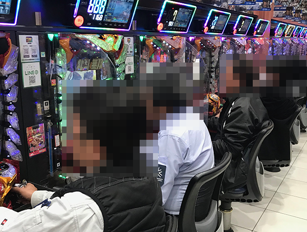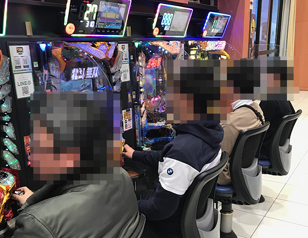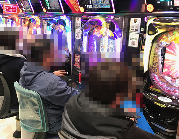 4円パチンコや1円パチンコ、1円/5玉パチンコの各シマに、うれしそうに遊技をおこなっている姿があった。