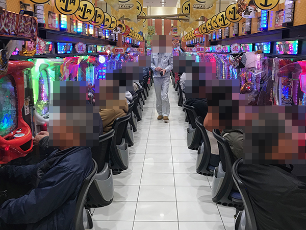店内で抜群の存在感を放つコーナーを探すべく、パチンコとパチスロの両方のシマをまわっていった。