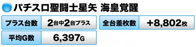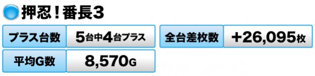 5台中4台がプラスで全台差枚数は+26,095枚だった。