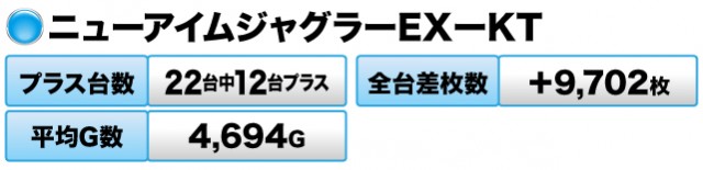 22台中12台がプラスで全台差枚数は+9,702枚をマークした。