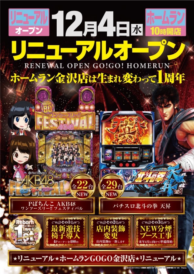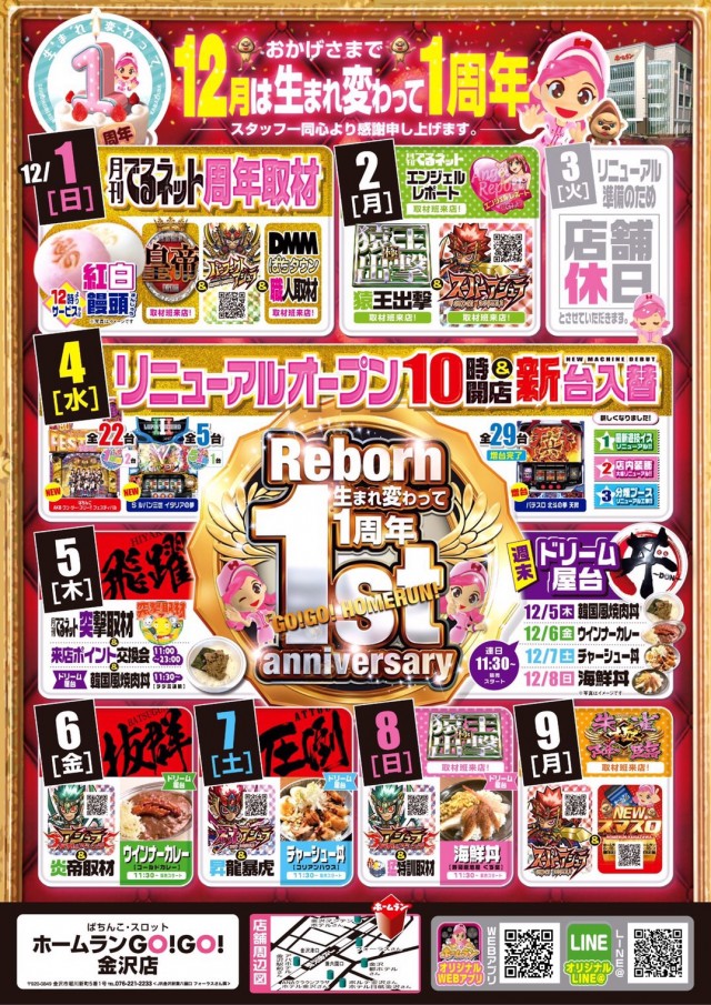 12月は、ホームランGOGO金沢店が【生まれ変わって1周年を迎える特別な1ヵ月】として、なにやら荒ぶっているとのこと。