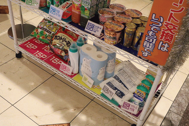 来店で貯まるポイントに応じて、好きな品と交換できる「来店ポイント景品」が充実していた。