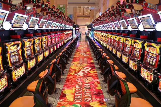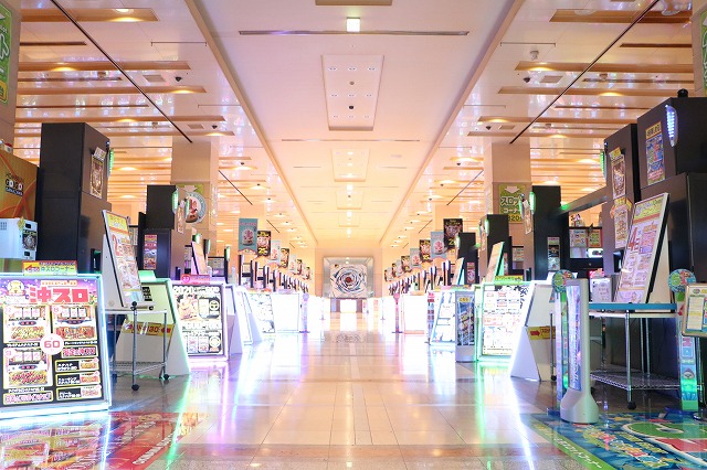 なんと我々はオープン前の店内に潜入することに成功。向こう側が霞んで見えるほど広大な面積に設置された各機種が、開店の時を静かに待っていた。
