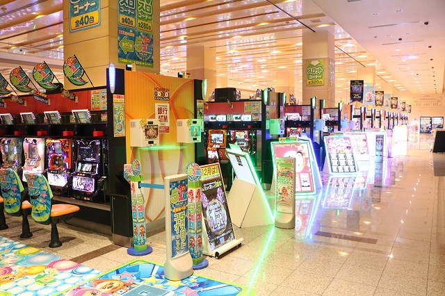 ミドルタイプから甘デジバラエティーまで、熱気につつまれているパチンココーナー。