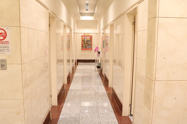 | 女性用トイレも高級ホテル並みの清潔さと広さ。遊技エリアからトイレに至るまで清潔感に溢れている |