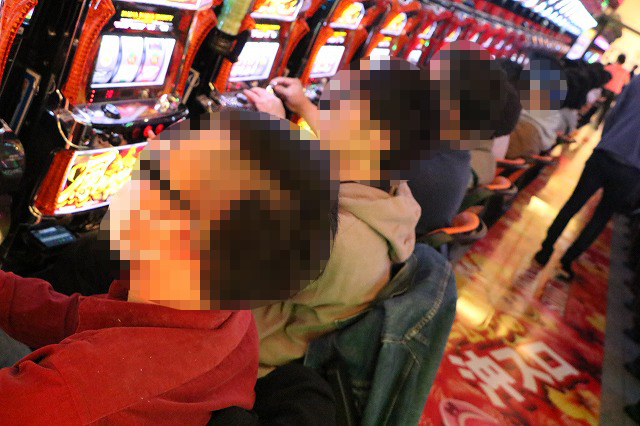 パチスロコーナーでは、もはや「お祭り状態」と言っても過言ではないほどボルテージは最高潮。全国を飛び回るぱちタウン取材班でも、なかなかお目にかかれないレベルの光景が広がっていた。