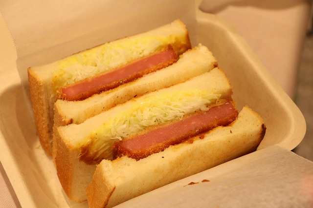 購入できたファンにお願いし撮影することに成功した幻(?)のハムカツサンド。これが200円で購入できるとは…、羨ましすぎる!
