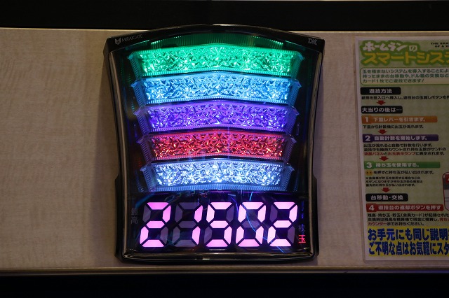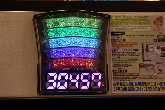 各台計数機で足元スッキリ&上部のランプで、持ち玉が何発あるか一目瞭然。