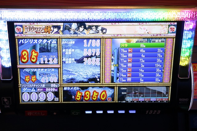 次回の新台入替で撤去されることが予告されている『バジリスク~甲賀忍法帖~絆』、『アナザーゴッドハーデス-奪われたZEUSver.-』の人気が高く、真っ先に埋まっていた。