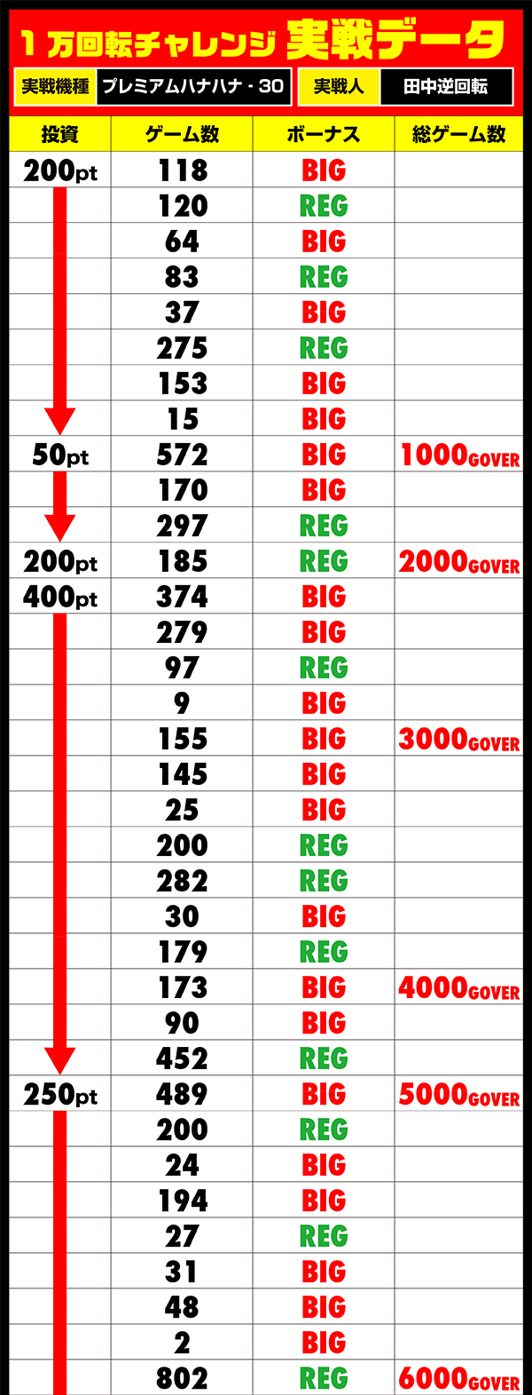 終盤から増えたボーナスのおかげで勝利も掴み、優秀な成績を残すことに成功した田中逆回転であった。