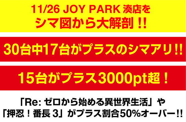 11月26日の「JOY PARK湊店」をシマごとに分析。