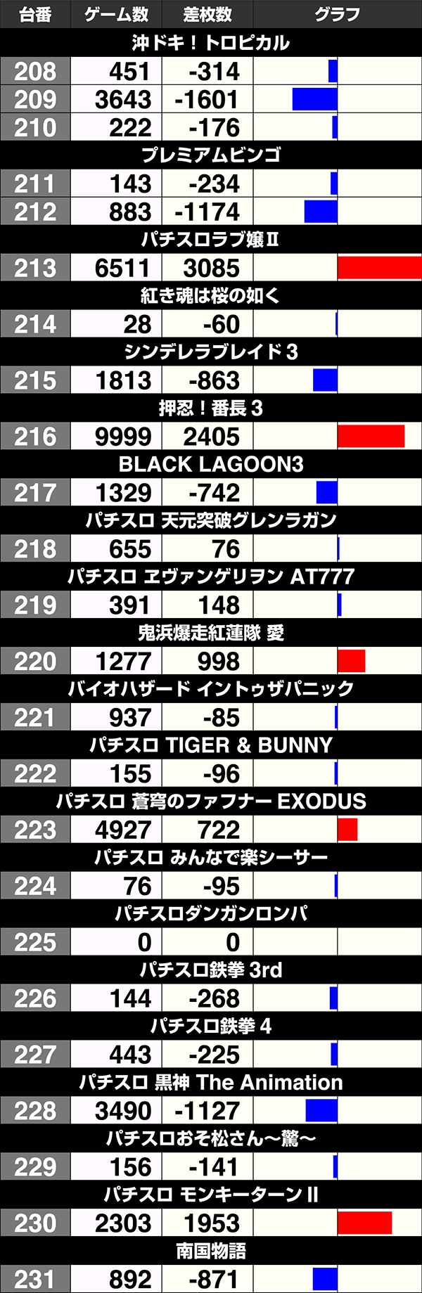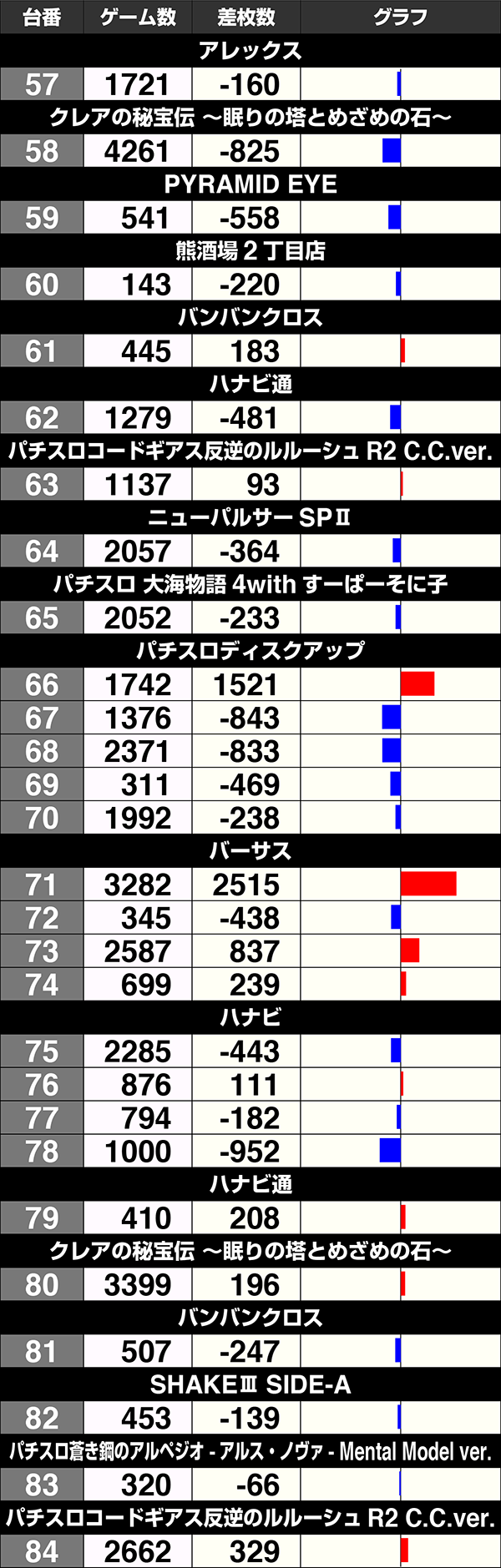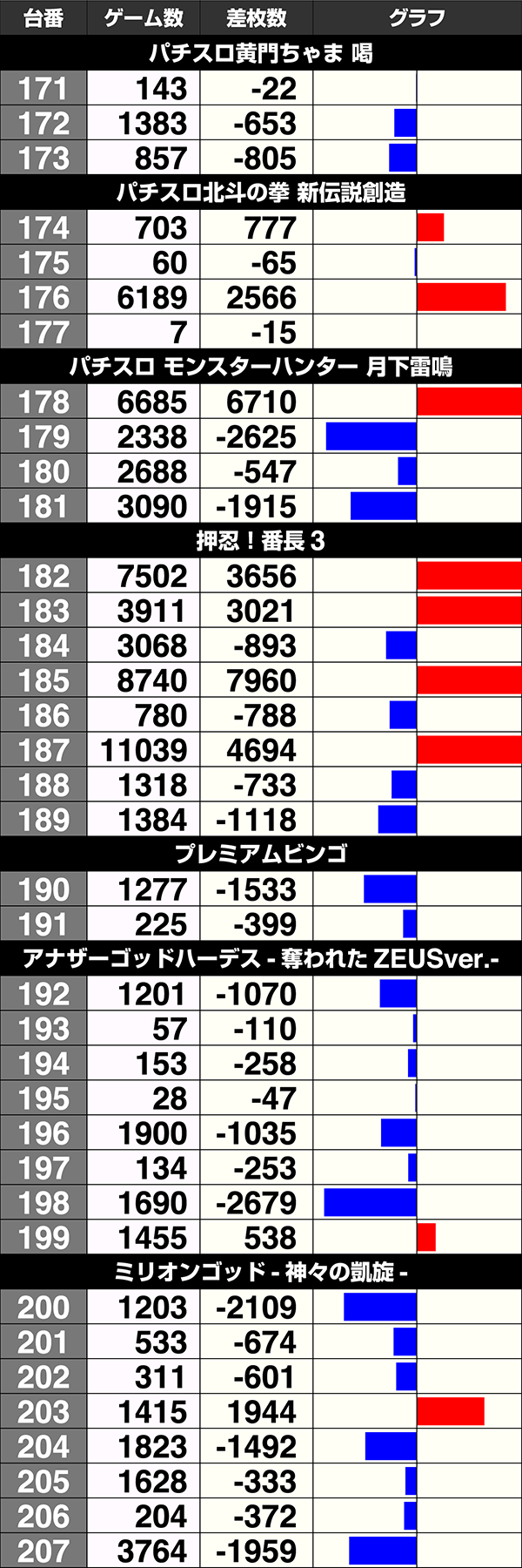 8台中4台がプラスの『バジリスク~甲賀忍法帖~絆』も含め、141番台から170番台は30台中17台がプラスであった。