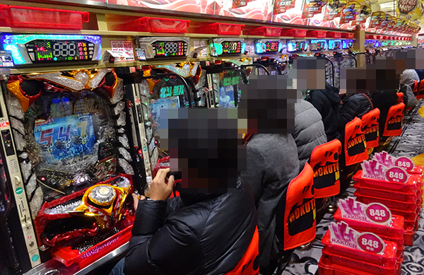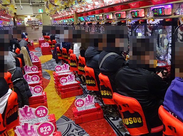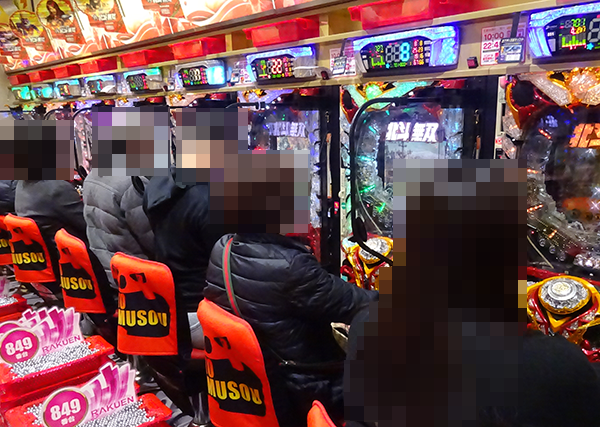 パチンココーナーで最多の設置台数であるうえに、滞在時はつねに高稼働と、もっとも活気づいている場所であった。
