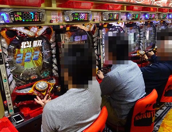 いくつもの機種が盛況となっているパチンココーナーのなかで、存在感を放っていたのはやはり「ぱちんこCR真・北斗無双」。プレイヤーの活躍が際立ち、ホール全体でみてもひときわ目立っていた。
