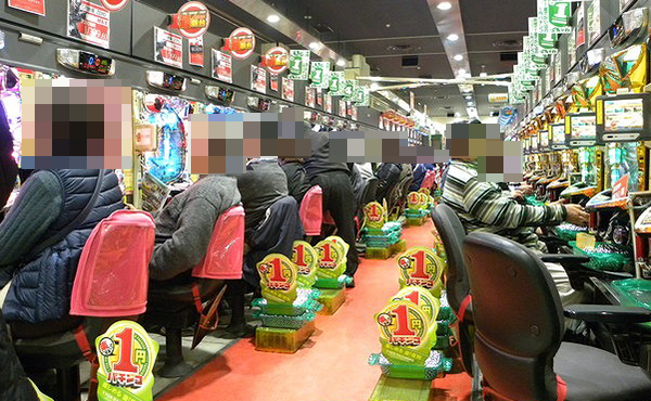 1円パチンコも空き台を探す方が難しいほどの盛況ぶり。
