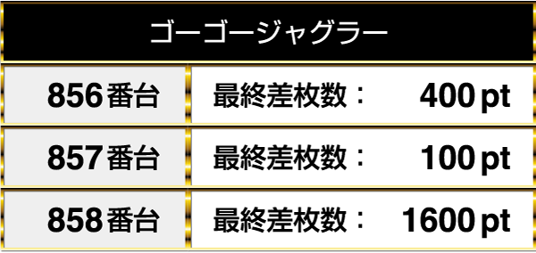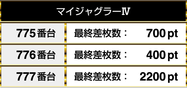 1000ptオーバーの台があった『マイジャグラーⅣ』と『ゴーゴージャグラー』は、3台が連なってプラスpt!