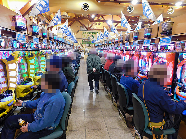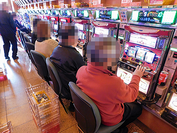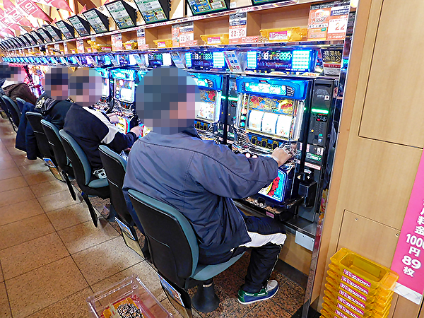 500円/89枚パチスロの支持も厚い。遊技を楽しむプレイヤーたちの姿が印象に残っている。