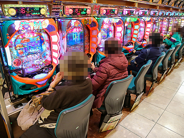 100円/89玉パチンコに目を移すと、「PAスーパー海物語 IN JAPAN2 with 太鼓の達人」をはじめとする海物語シリーズに人気が集まっており、シマ全体から活気が感じられた。