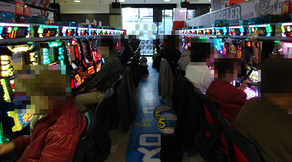 じっくりと遊ぶことができる5円パチスロも大にぎわい。