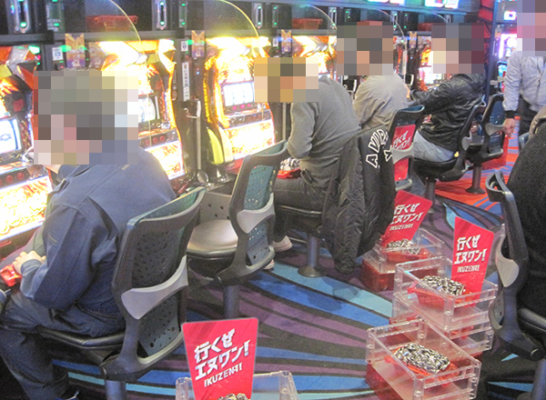 遊技を満喫しているような姿のほかに、ボーナス回数が50回以上の台も目にしている。
