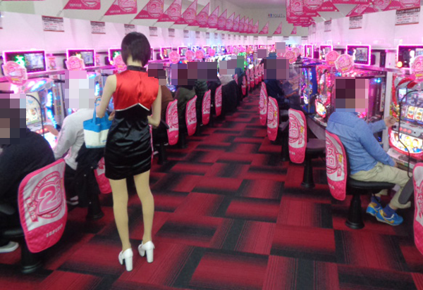 ホールは1階と2階にわかれており、まずは2階にあるパチスロの状況をお届けしていく。