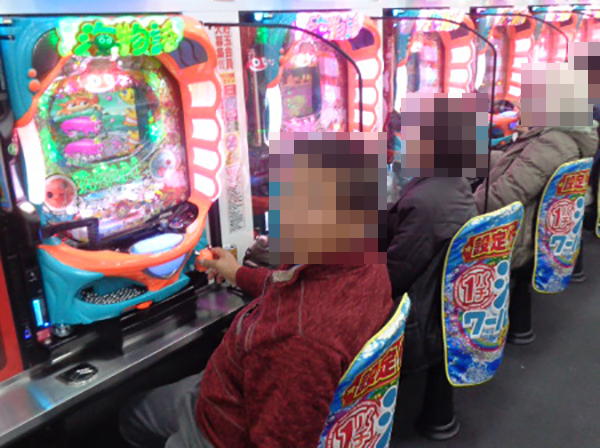 パチスロの低貸し玉コーナーのにぎわいも大きい。