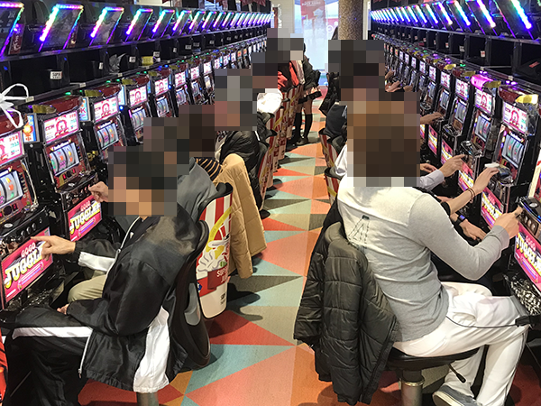 すべての遊技台に各台計数機がついているという設備面も充実した環境で、プレイヤーたちはパチンコとパチスロを楽しんでいた。