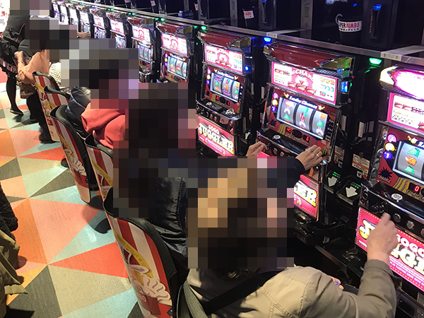 確認時はほぼフル稼働となっており、イキイキとレバーを叩く姿がズラリと並んでいる光景は壮観。年齢や性別を問わずに、多くのプレイヤーがにこやかな表情で遊技をおこなっていた。