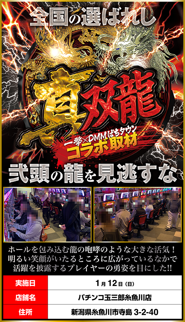 「パチンコ玉三郎糸魚川店」を包み込む華やかなムードを感じながら、龍の存在を探っていった「真双龍」であった。