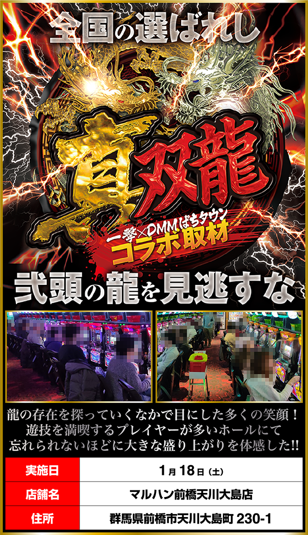 「真双龍」をおこなうべく、舞台となる「マルハン前橋天川大島店」へとむかった。