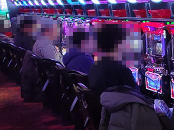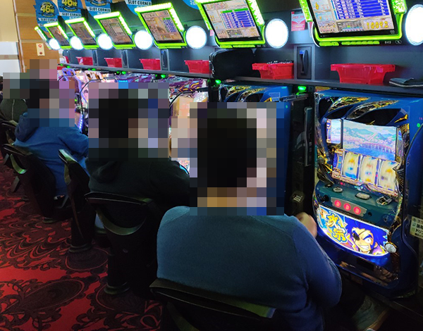 パチスロコーナーをみていくと、ボーナスタイプからAT・ART機にいたるまで、さまざまなスペックの機種が高稼働。プレイヤーたちはかろやかにレバーを叩いていた。