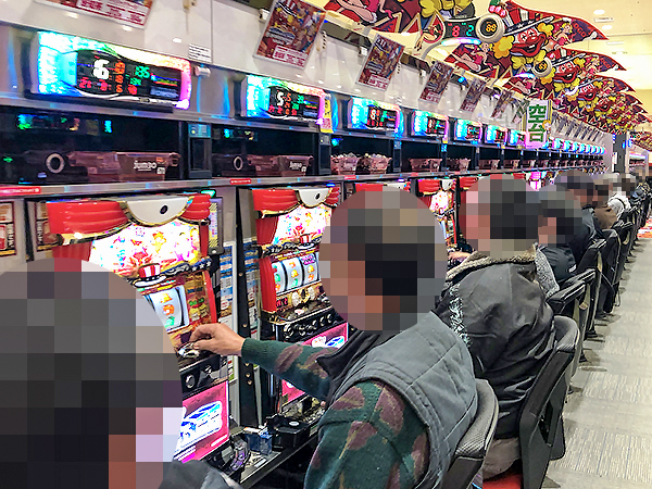 10円・5円パチスロの稼働も高い。プレイヤーたちが楽しそうにレバーを叩く姿を至る所で目撃している。