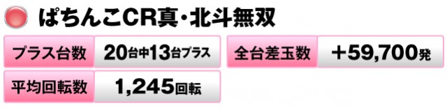 20台中13台がプラスで全台差玉数は+59,700発をマークした。