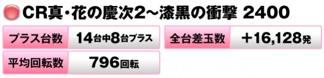 14台中8台がプラスで全台差玉数は+16,128発だった。